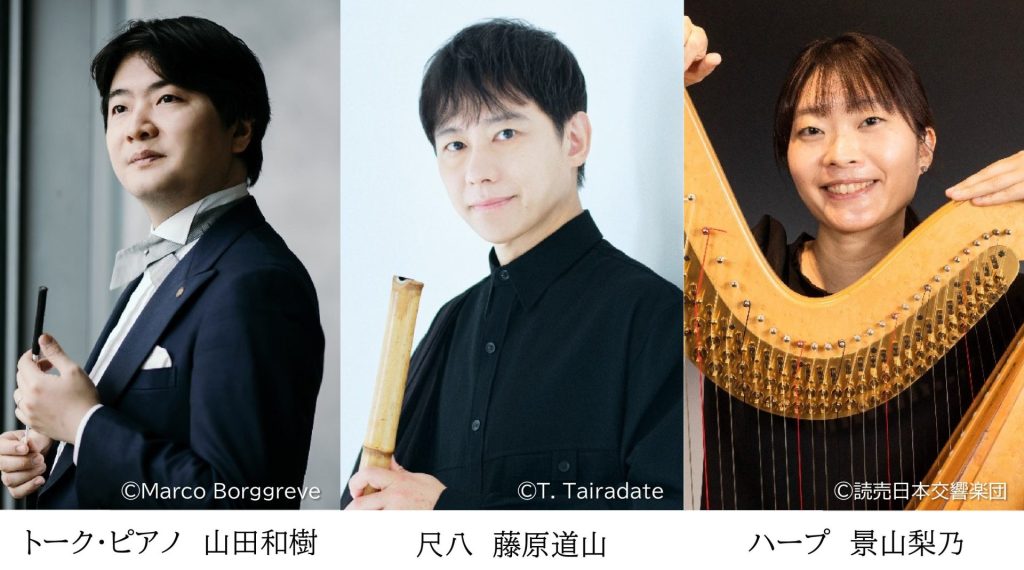 9回目となる今回は、尺八演奏家・藤原道山と読売日本交響楽団ハープ奏者・景山梨乃をゲストに、軽妙なトークと音楽をお楽しみください。
