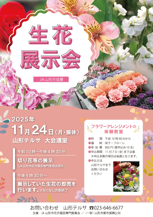 内 容 JA山形市花卉園芸専門委員会のみなさんが育てたバラやストック、